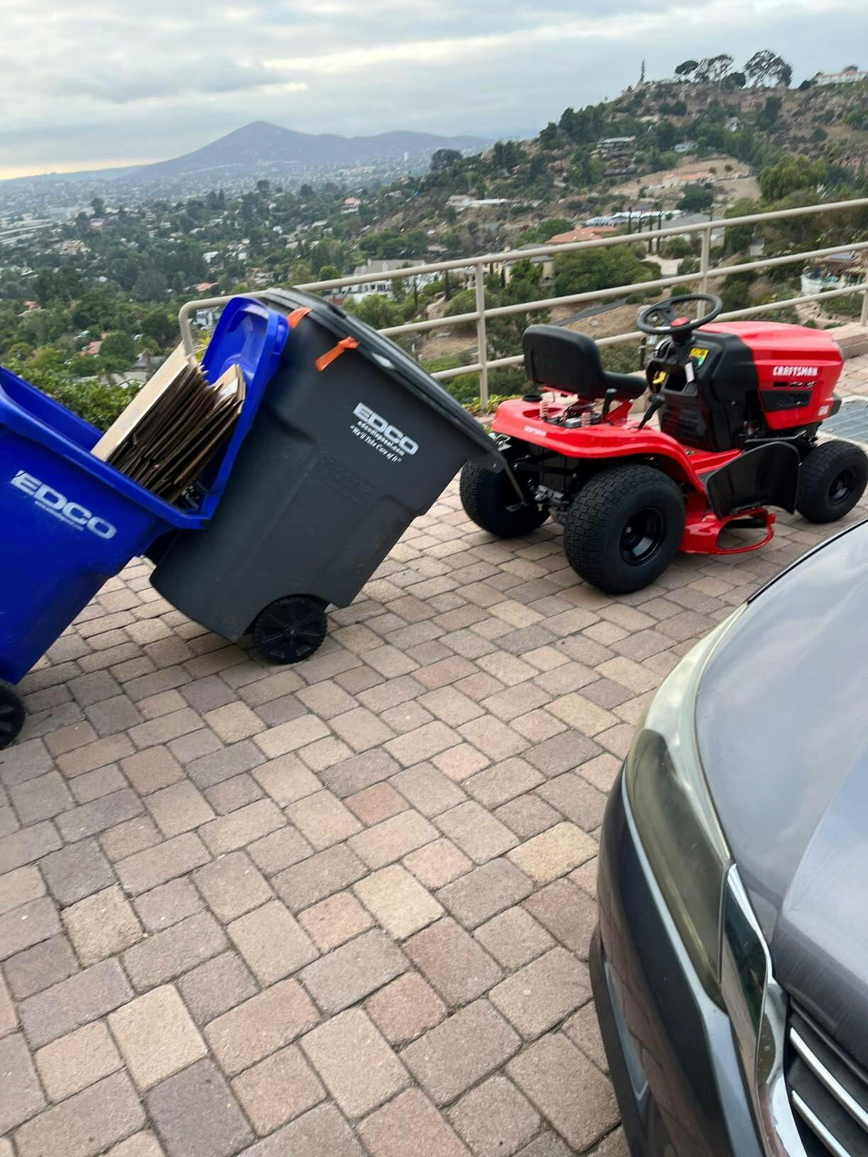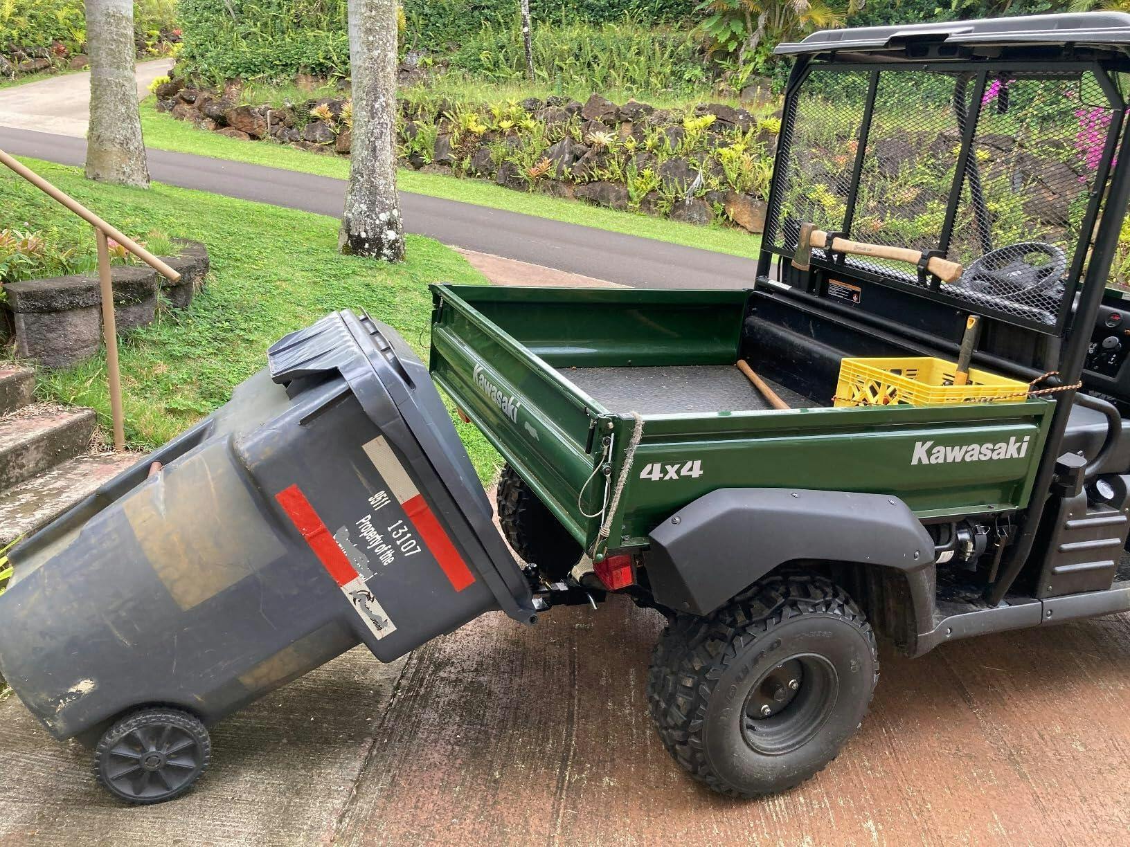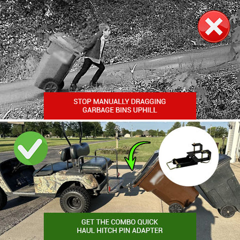 Like others, need to haul the garbage can up the long uphill driveway to the main road. Usually did this dragging it up into the pickup bed. When it gets full, getting a boost lift from someone saves some wear and tear on me and the truck. It scuffs up the tailgate liner some, but it's a truck, so okay. Hitching it up to the UTV is so much easier. Can also throw the hitch on the truck. Doesn't matter how much it weighs that week.