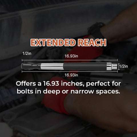 A: Standard ratchet extensions often twist or can’t reach narrow spots. This wrench’s slim profile and high-torque design offer more reach, faster operation, and smoother handling under pressure.
