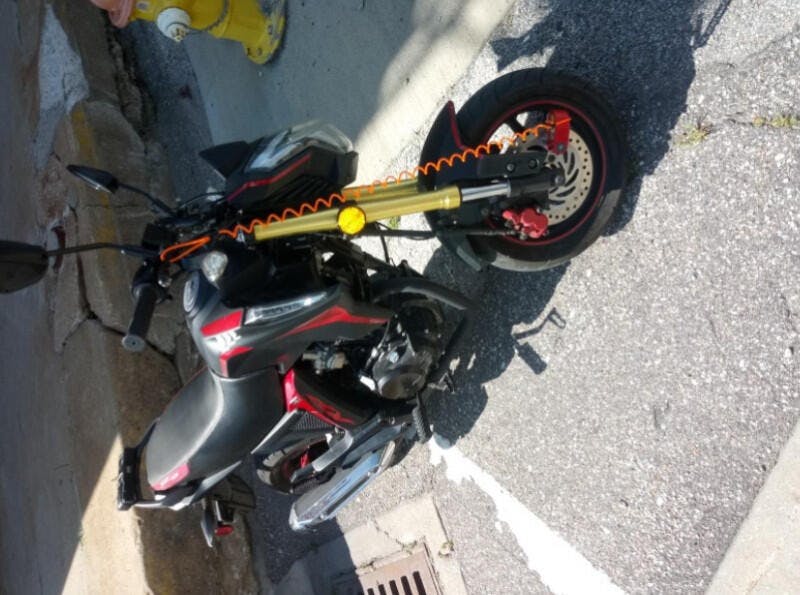 A: The slight of touching your bike or a raindrop hitting it sets this thing off. If the person picked up the bike it would just keep going off the whole ride and stops on its own after.