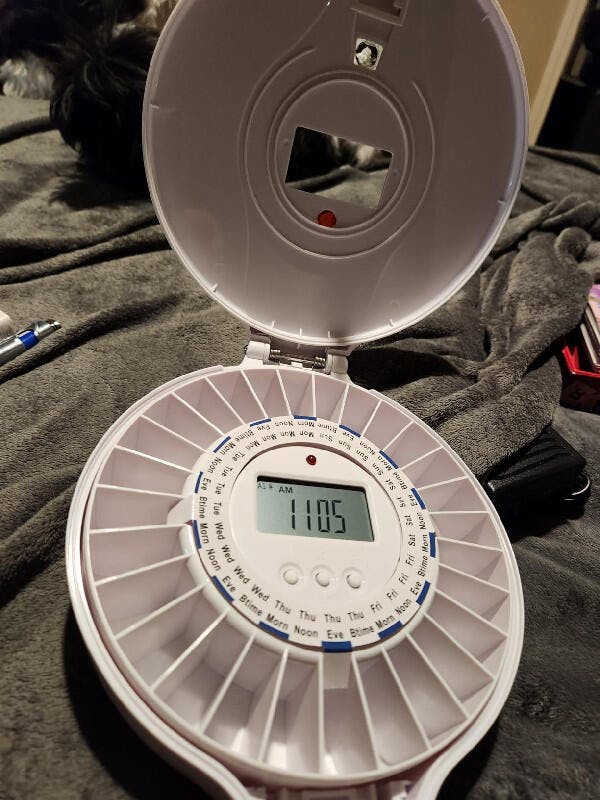 I kept forgetting to take my meds. I had tried everything. When I got this I have never forgotten my meds since. It has loud alarms that go off on the times I set it for. It was kinda confusing at first to set up everything but the directions are great
